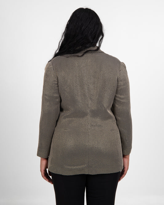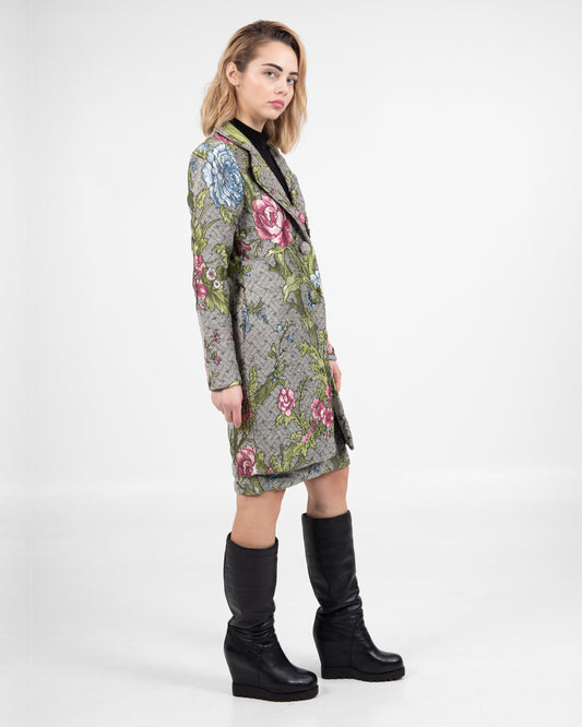 Navy Blue Blazer with Handcrafted Beaded Lapel Brooches