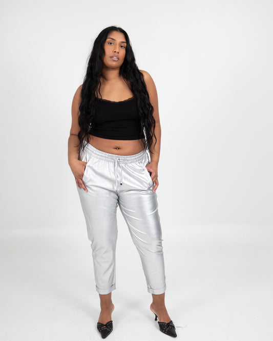 Metallic Silver Jogger Pants