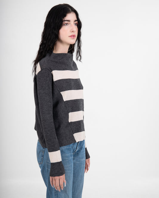 Striped Ribbed Knit Boat Neck Sweater